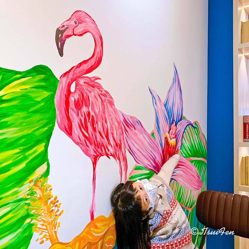 這裡的牆上也有鮮艷的繪畫,Mia馬上擺POSE叫我幫她拍照~