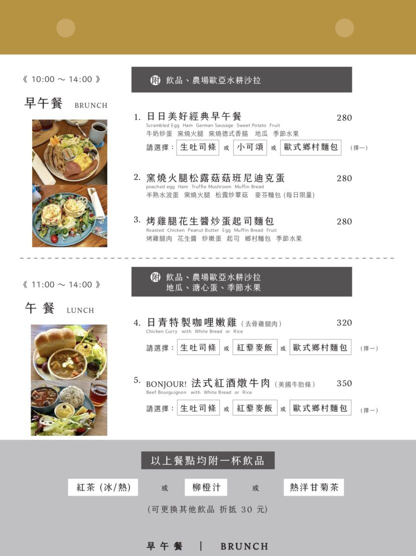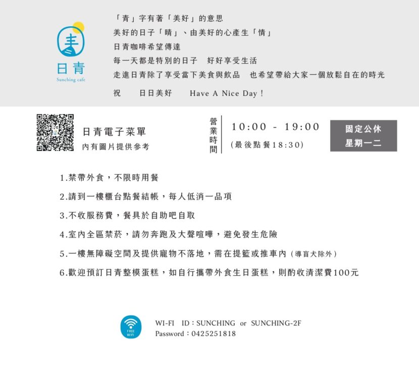 [菜單及消費方式]轉自日青咖啡粉絲頁