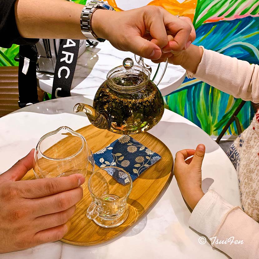 茶上來後,Mia爭相想幫我倒茶,結果被她猛倒茶,又回沖了一壺。