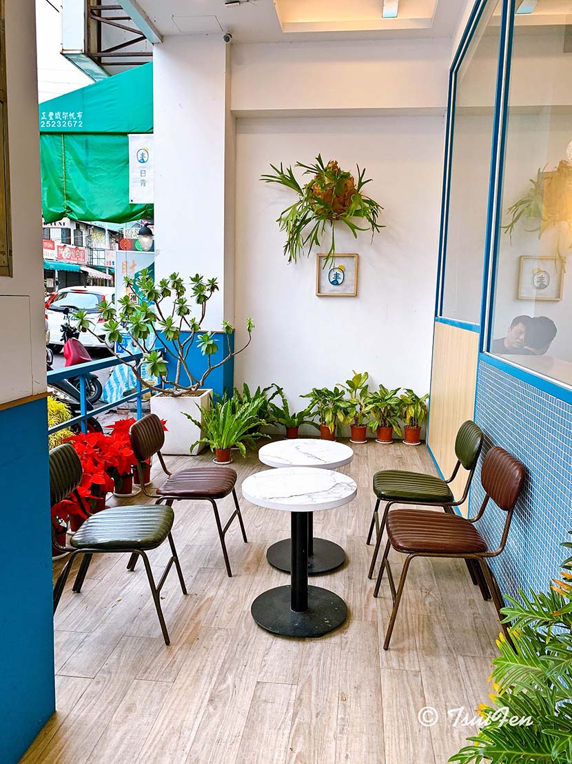 咖啡廳外部也是熱帶雨林風格的植物,搭配戶外座位區